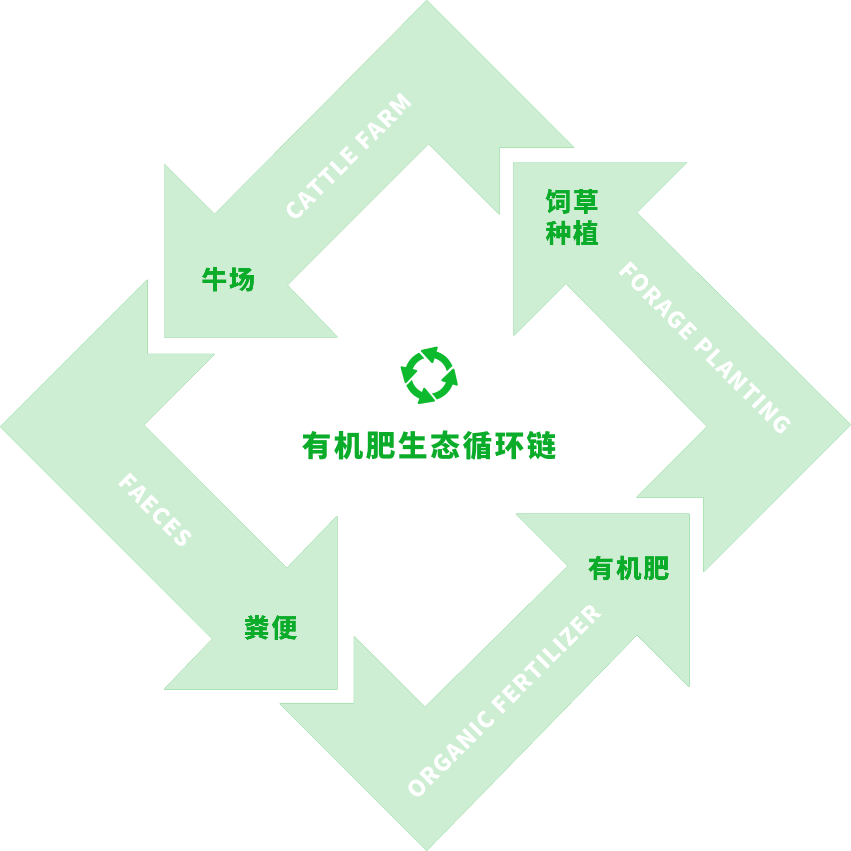 通过有机肥生产,形成牛场-粪便-有机肥-饲草种植-牛场的循环链,最大限度利用资源和保护生态环境。